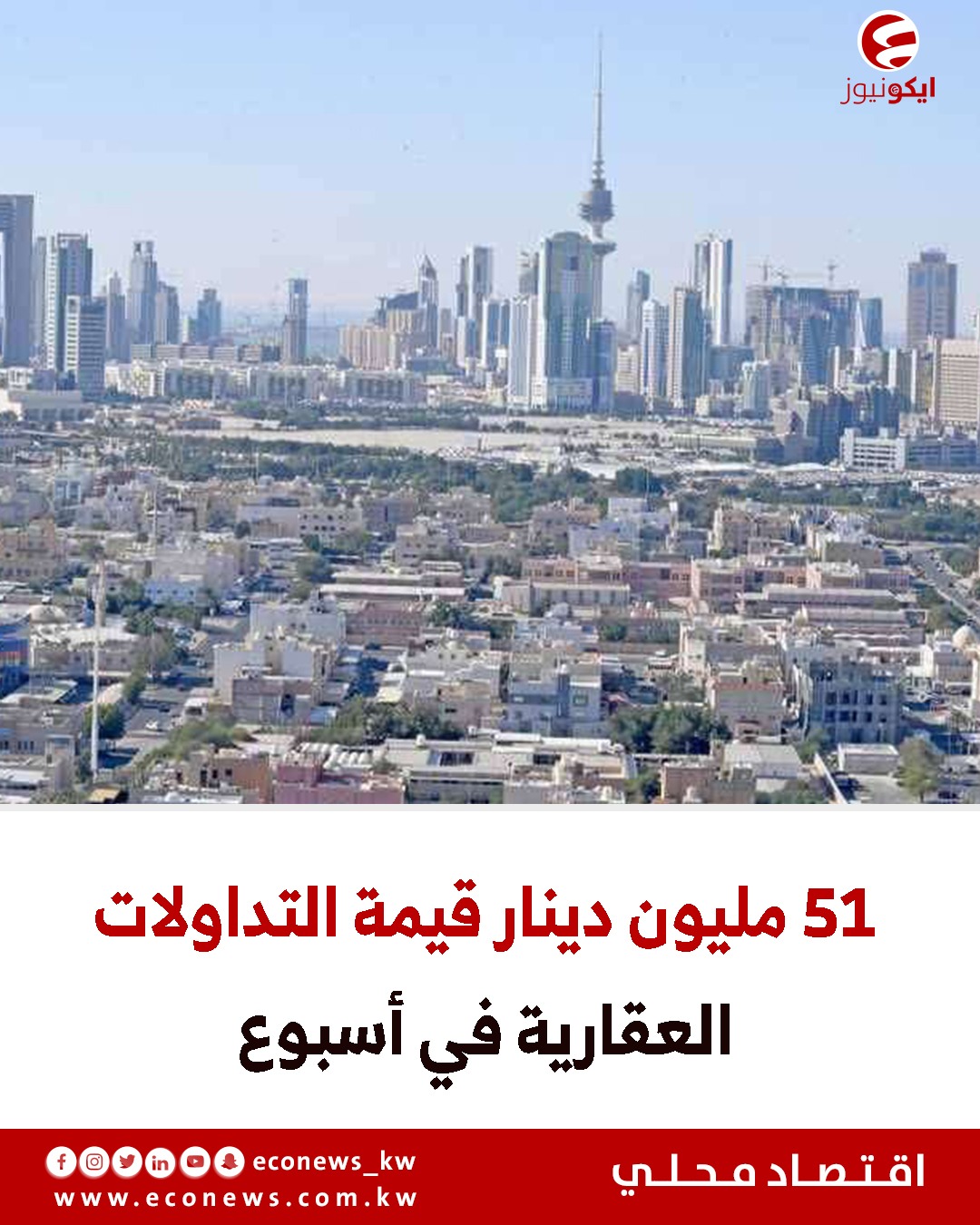 أظهرت إحصائية إدارة التسجيل العقاري والتوثيق في وزارة العدل اليوم الاثنين تداول 99 عقدا عقاريا خلال أسبوع بقيمة إجمالية بلغت حوالي 51 مليون دينار كويتي